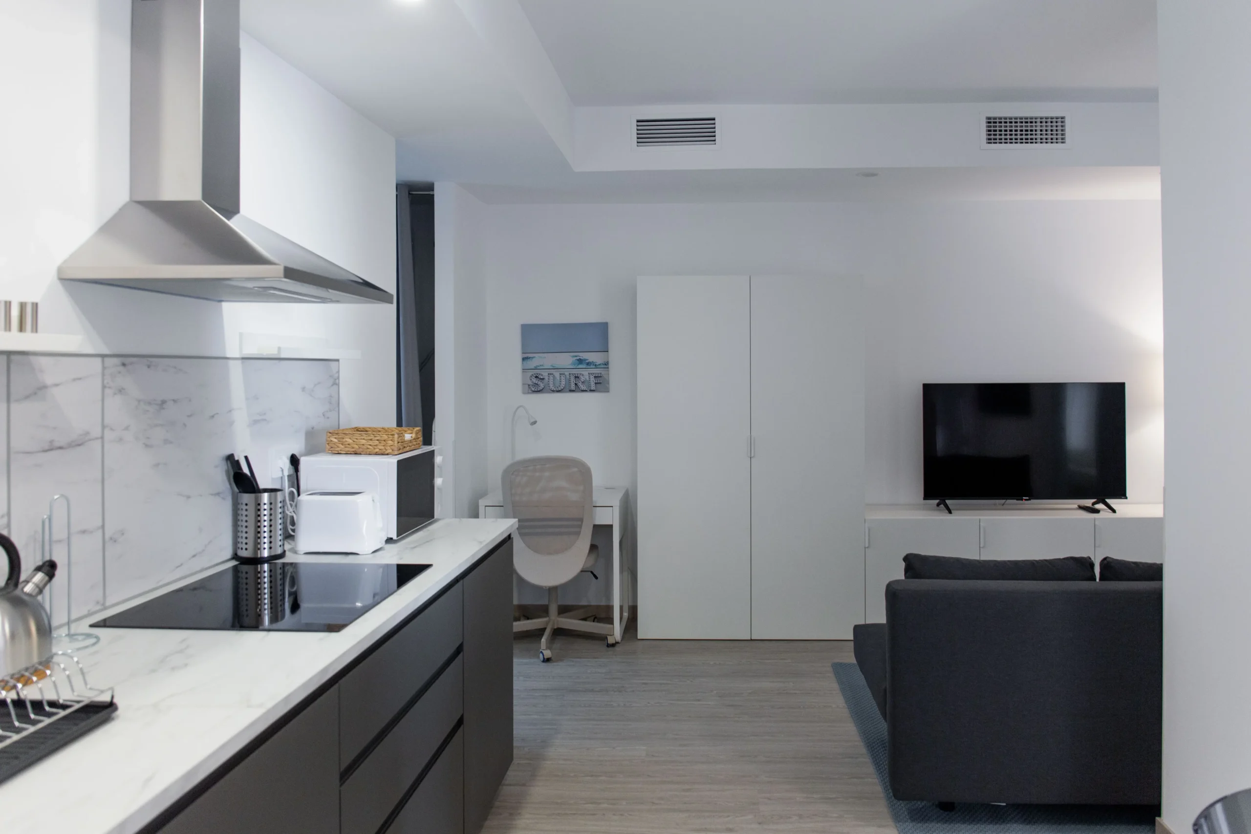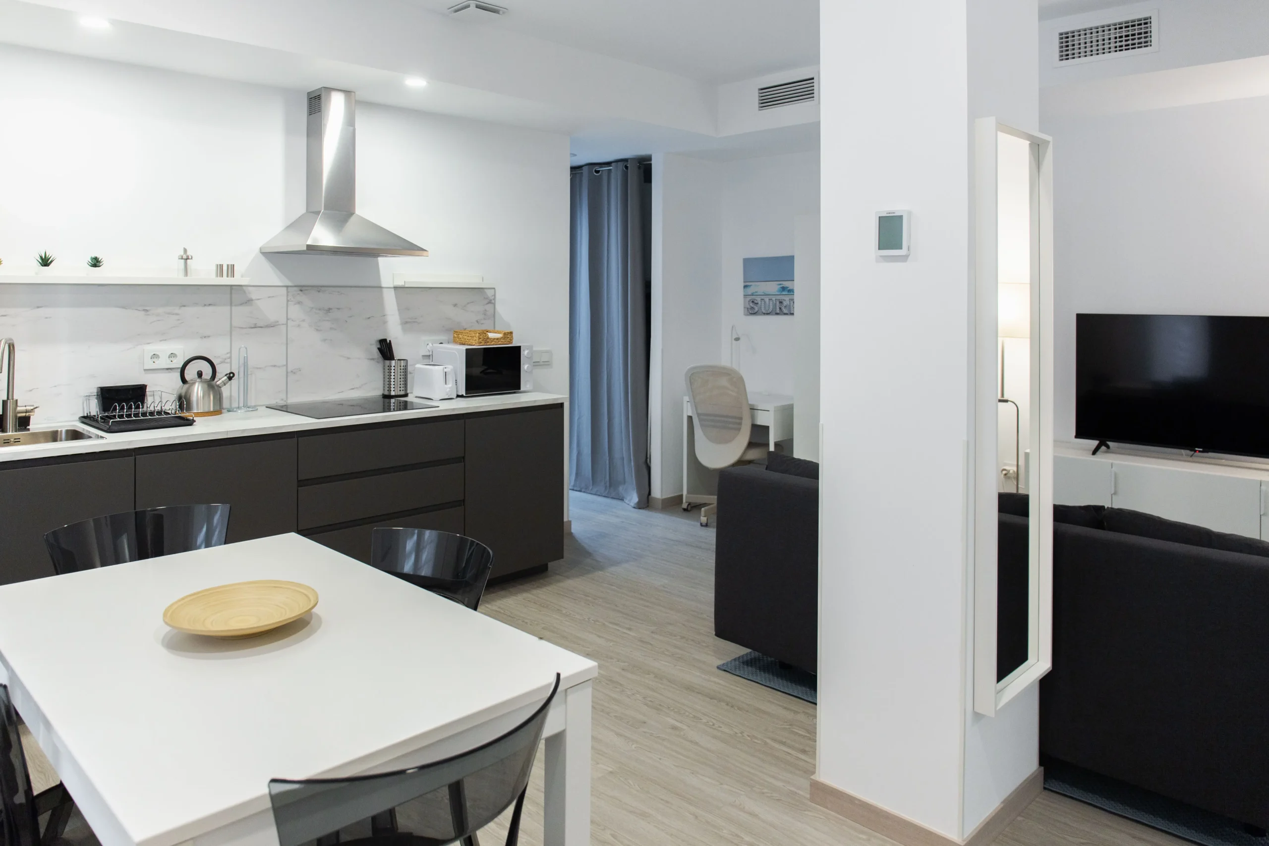 Planning a couples getaway?, Malaga is the perfect destination, and our Terral apartment is the ideal choice. Featuring two bedrooms with double beds and a sofa bed in the living room, it offers ample space for relaxation. Enjoy privacy with two individual bathrooms, and indulge in your favorite romantic meals with a fully equipped kitchen for cozy nights in.